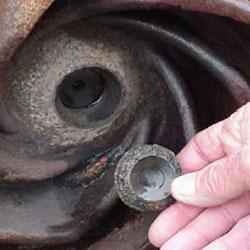 Un soldador se dispon铆a a quitar un impulsor con rosca que estaba agarrado al eje de 2-1/2 pulgadas (16,1 cm.) de una bomba centr铆fuga.