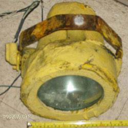 Una lámpara reflectora de 23 libras se cayó 90 pies (27,5 metros) desde el pescante de una grúa hasta la cubierta de la plataforma de perforación.