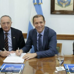 Se trata de un convenio de cooperaci贸n rubricado hoy por el gobernador Omar Guti茅rrez; el presidente de la UIA, Miguel Acevedo, y el titular de la Adineu, Roberto Enr铆quez.