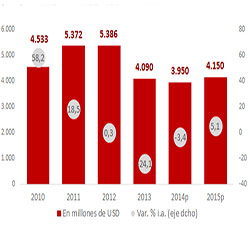 Para 2015 se espera un leve repunte de las exportaciones mineras aunque se mantendrían lejos del potencial.