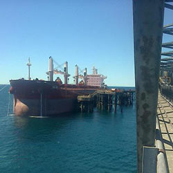 Están cargando el primer embarque de hierro concentrado extraído en Sierra Grande, con destino al gigante asiático.