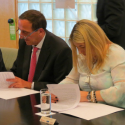La gobernadora Rosana Bertone junto a los ejecutivos de las empresas Total Austral S.A., Wintershall Energ铆a S.A. y Pan American Sur, suscribieron el acuerdo de pr贸rroga de la concesi贸n de la explotaci贸n por un plazo de 10 a帽os para las seis 谩reas offshore que conforman ...