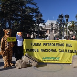 Al igual que días atrás en la Casa de Jujuy en Buenos Aires, Greenpeace manifestó contra el Gobierno de Eduardo Fellner por la explotación petrolífera en el Parque Nacional Calilegüa y por la contaminación advertida tanto por los trabajadores de la reserva como por ...