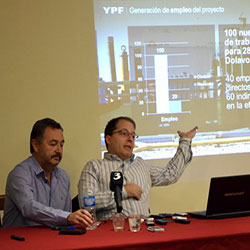 Técnicos y representantes de relaciones públicas de YPF presentaron en Trelew -con más dudas que certezas- el plan de extracción de arenas silíceas del Valle para transportarlas a Vaca Muerta para el fracking.