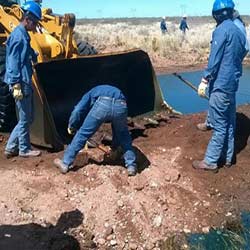 Al menos tres camiones chupas y palas cargadoras apuntalaron el trabajo de operarios de la empresa YPF y contratistas en el marco del Plan de Contingencia que se puso en marcha inmediatamente despu茅s de detectarse el hecho. En la primera jornada se trabaj贸 hasta avanzada la ...