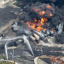 Canad谩 modernizar谩 en breve plazo el transporte de petr贸leo por ferrocarril en respuesta a recomendaciones de una investigaci贸n tras el descarrilamiento y explosi贸n de un tren cisterna en Lac-Megantic, Quebec, donde murieron 47 personas.